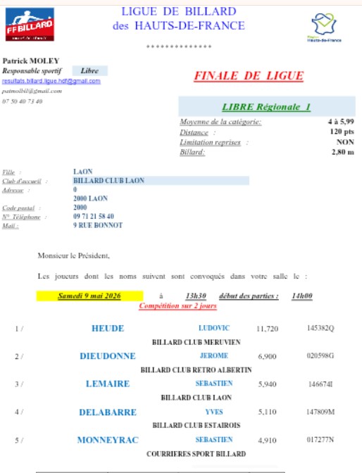 en déplacement pour la dernière journée à COURRIERES (Pas-de-Calais)